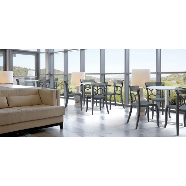 Papatya O’pera-K е модерна и практична столица со препознатлив дизајн кој комбинира традиционална форма со современи материјали. Изработена од стаклено-засилен полипропилен и транспарентен поликарбонатен потпирач, оваа столица нуди издржливост, лесно одржување и елегантен изглед.