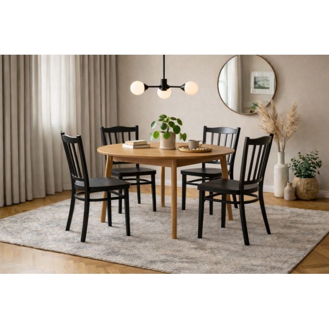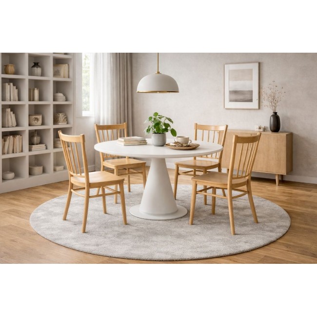 Нејзиниот елегантно обликуван потпирач со вертикални летви обезбедува удобна поддршка, додека минималистичкиот дизајн ја прави идеален избор како за домашни трпезарии, така и за угостителски простори.